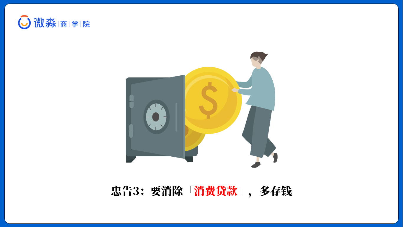 第三条:要消除消费贷款,多存钱,来购买生钱资产