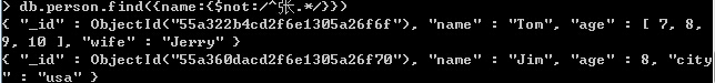 Note:$not正则匹配,不包含以张开头的数据。