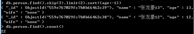 3、sort({age:1}) : 1.正序查询,-1倒叙查询。